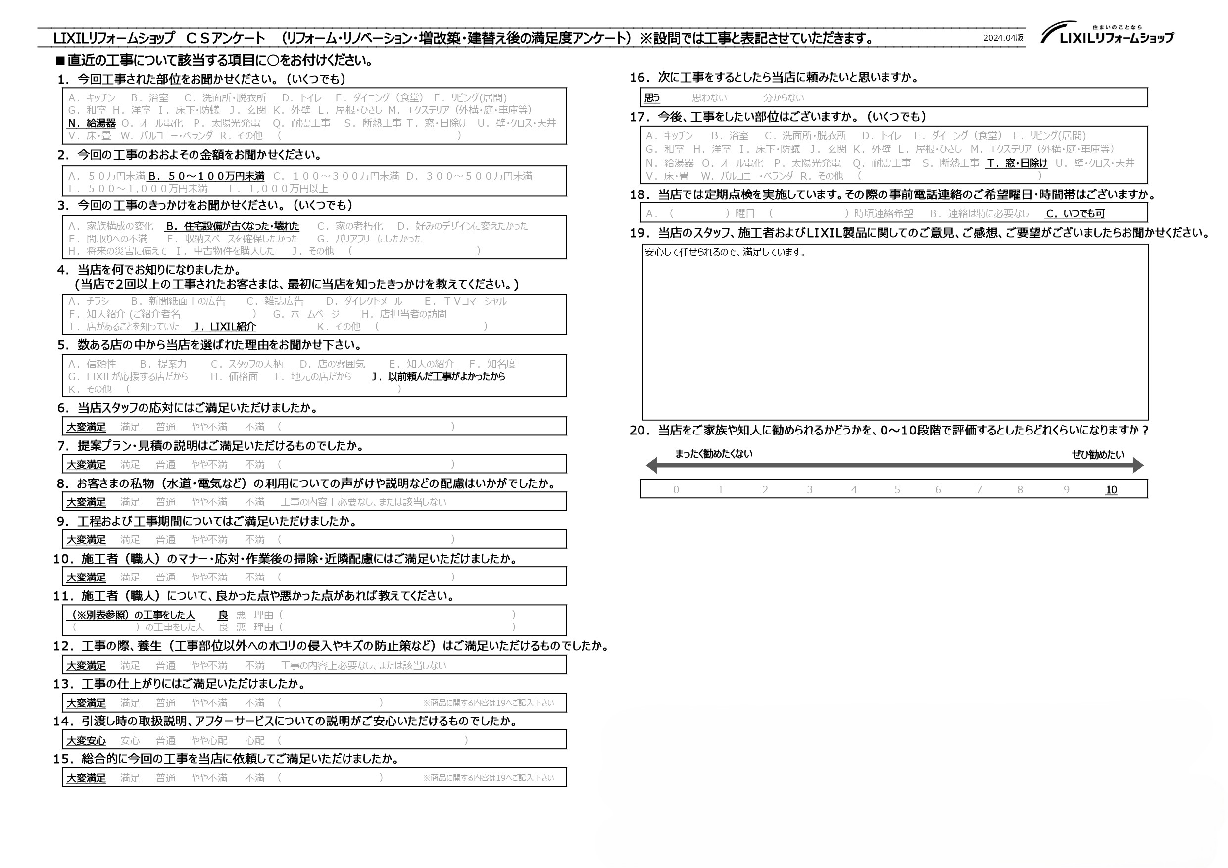 池田市 M様 投稿者:Wallhouse1 投稿公開日:2025年11月7日 投稿カテゴリー:blog / お客様の声 タグ: LIXIL, LIXILリフォームショップ, Wall house reform, お客様の声, アンケート, リクシル, リクシルリフォームショップ, リフォーム, リフォーム工事, 口コミ, 安心, 池田, 給湯器, 茨木, 茨木市, 豊中, 豊中市